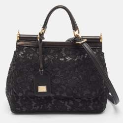 Dolce & Gabbana Black Crochet and Watersnake Large Miss Sicily Top Handle Bag
