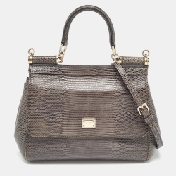 Dolce & Gabbana Grey Lizard Embossed Leather Medium Miss Sicily Top Handle Bag