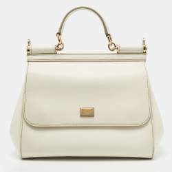 Dolce & Gabbana Grey Leather Medium Miss Sicily Top Handle Bag