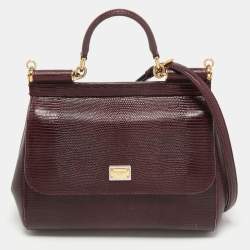 Dolce & Gabbana Metallic Silver Iguana Embossed Leather Small Miss Sicily Top Handle Bag