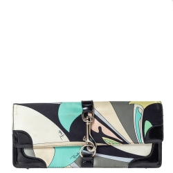 Emilio Pucci Multicolor Printed Satin Magnet Closure Pochette Bag