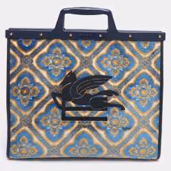 Etro Blue/White Paisley Print Canvas and Leather Shopper Tote