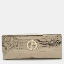 Giorgio Armani Gold Croc Embossed Patent Leather Frame Clutch