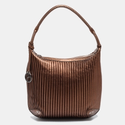 Giorgio Armani Metallic Brown Pleated Leather Hobo