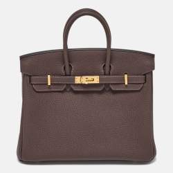 Hermes Chocolat Epsom Leather Gold Finish Birkin 25 Bag