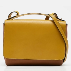 Marni Mustard/Brown Leather Metal Top Handle Bag