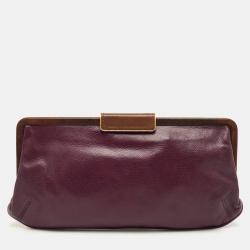 Marni Burgundy/Dark Brown Leather Frame Clutch