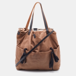 Marni Dark Brown Suede and Leather Lasercut Hobo