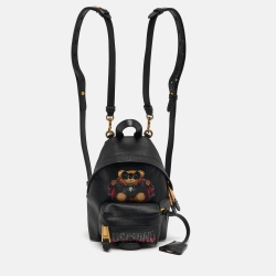 Moschino Jeremy Scott Bat Teddy Bear Mini Black Coated Canvas Backpack