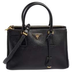 Prada Black Saffiano Lux Leather Medium Galleria Double Zip Tote