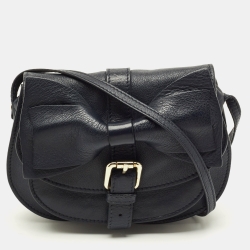 RED Valentino Black Satin And Lace Chain Strap Evening Bag