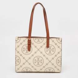 Tory Burch New Cream/Brown T Monogram Leather Small Contrast Tote