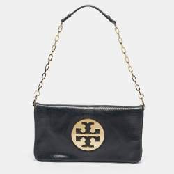 Tory Burch Black Leather Logo Flap Shoulder Bag