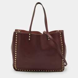 Valentino Burgundy/Brown Leather Rockstud Reversible Tote