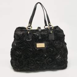 Valentino Multicolor Flower Applique Satin and Leather Tote