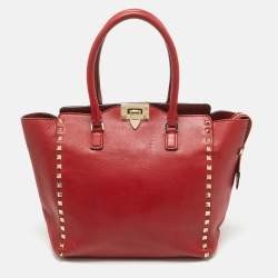 Valentino Burgundy Leather Medium Rockstud Trapeze Tote