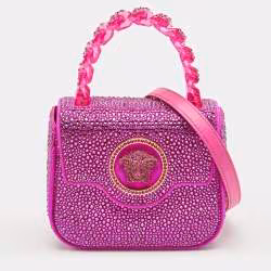 Versace Black Leather Studded Crystal Chain Shoulder Bag