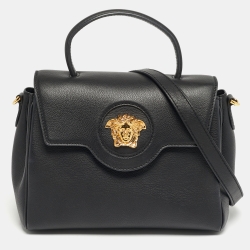 Versace Black Quilted Leather Snap Out Of It Satchel