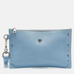 Versace Black Leather Medusa Wristlet Zip Pouch