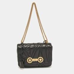 Versace Black Leather Medusa Flap Chain Shoulder Bag