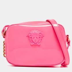 Versace Pink Fabric Mirror Frame Chain Shoulder Bag