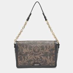 Versace Brown/Black Signature Fabric and Leather Biker Hobo
