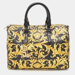 Versace Black/Gold Signature Fabric and Leather Studded Snap Out Of It Satchel