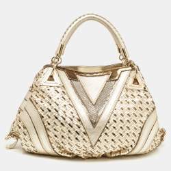 Versace Metallic Gold/Cream Signature Canvas And Leather Shoulder Bag