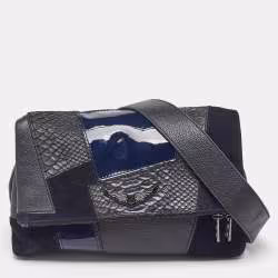 Zadig & Voltaire Black/Navy Blue Leather and Suede Patchwork Flap Shoulder Bag