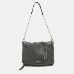 Zadig & Voltaire Grey Leather Rock Chain Link Pochette Shoulder Bag