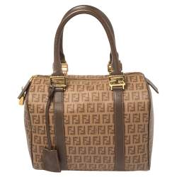 Fendi Brown Zucca Canvas Mixed Media Boston Bag