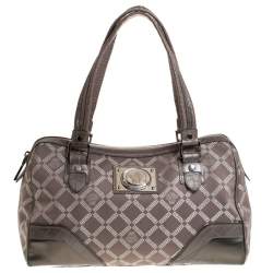 Versace Metallic Beige Signature Canvas and Leather Boston Bag