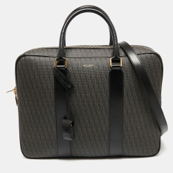 Saint Laurent Brown/Black Signature Coated Canvas and Leather Briefcase