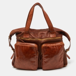 Dolce & Gabbana Tan Leather Double Pocket Weekender Bag
