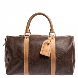 Etro Brown Paisley Printed Coated Canvas Boston Bag