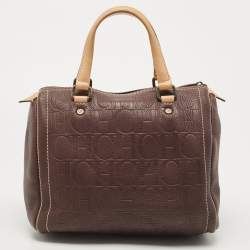 CH Carolina Herrera Metallic Gold Monogram Leather Large Andy Boston Bag