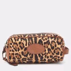 Dolce & Gabbana Brown Leopard Print Fabric and Leather Cosmetic Pouch