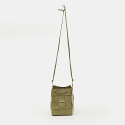 Bottega Veneta Green Woven Leather Cassette Bucket Bag