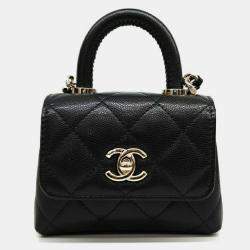 Chanel Black Caviar Leather Vintage CC Drawstring Bucket Bag