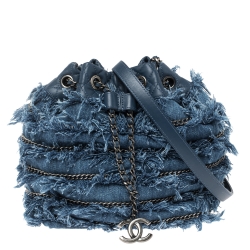 Chanel Blue Denim CC Fringe Drawstring Bucket Bag