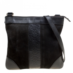 Gucci Black GG Canvas And Leather Flat Messenger Bag