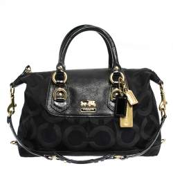 Coach Black/Grey Signature Canvas Peyton Satchel