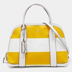 Coach Beige/White Signature Canvas and Leather Buckle Satchel