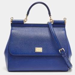 Dolce & Gabbana Blue Leather Small Miss Sicily Top Handle Bag