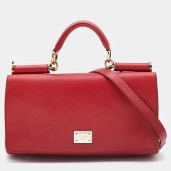 Dolce & Gabbana Red Lizard Embossed Leather Medium Miss Sicily Top Handle Bag