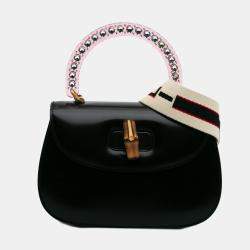 Gucci Black Leather Diana Bamboo Top Handle Bag