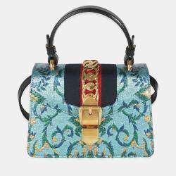Gucci Blue Iridescent Embroidered Brocade Mini Sylvie Top Handle Bag