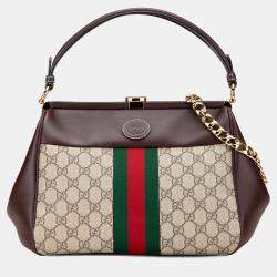 Gucci Beige Brown GG Supreme Ophidia Virgo Top Handle Bag
