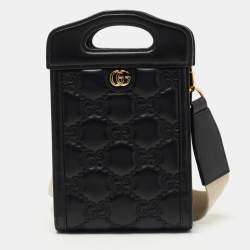 Gucci Black Diagonal Quilt Leather Mini GG Marmont Torchon Top Handle Bag