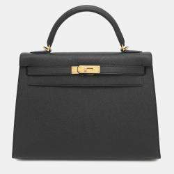 Hermès Kelly 32 Black Calf Box Leather GHW Outside Stitch Handbag